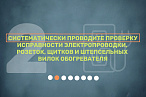 - систематически проводить проверку исправности электропроводки, розеток, щитков и штепсельных вилок обогревателя;