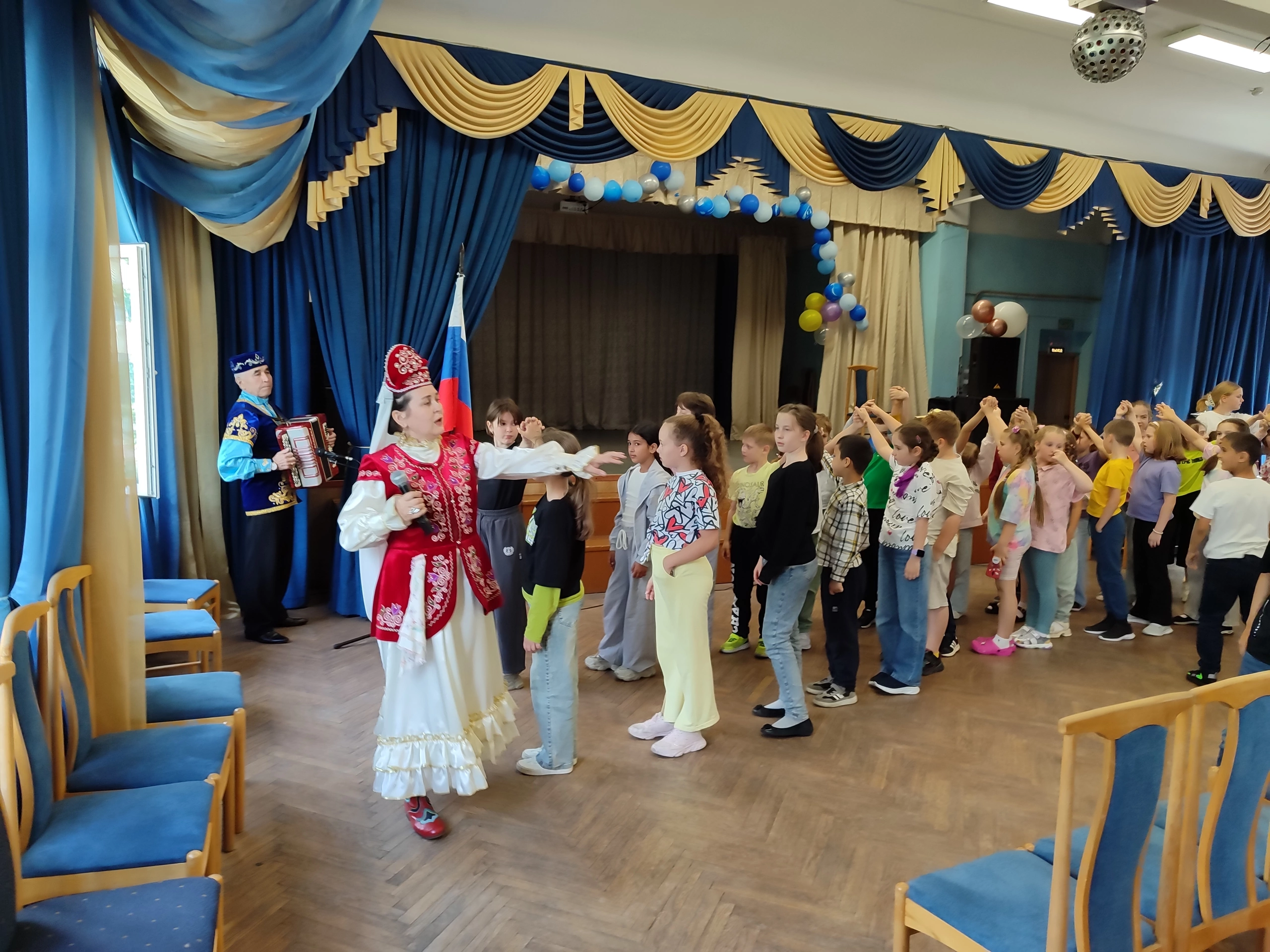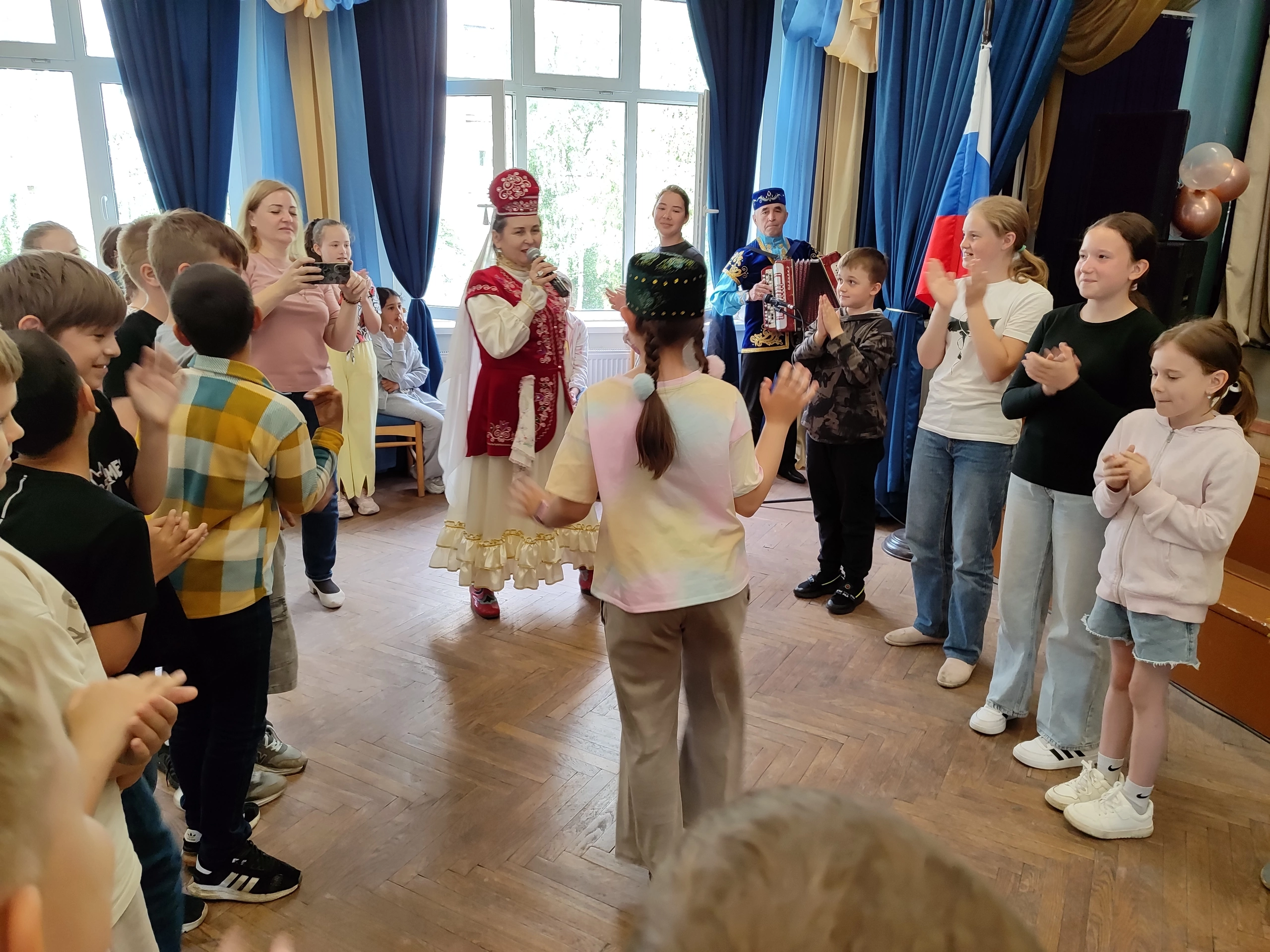 Дети послушали о татарской культуре и наглядно увидели традиционные татарские костюмы, услышали строки одного из самых известных татарских поэтов Габдуллы Тукая, узнали о том, где находится памятник в Санкт-Петербурге этому замечательному поэту.