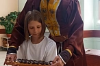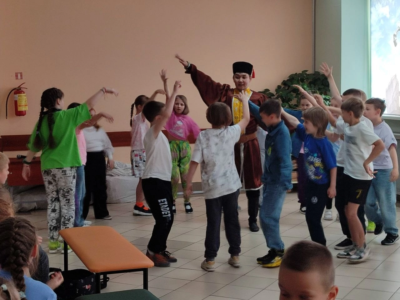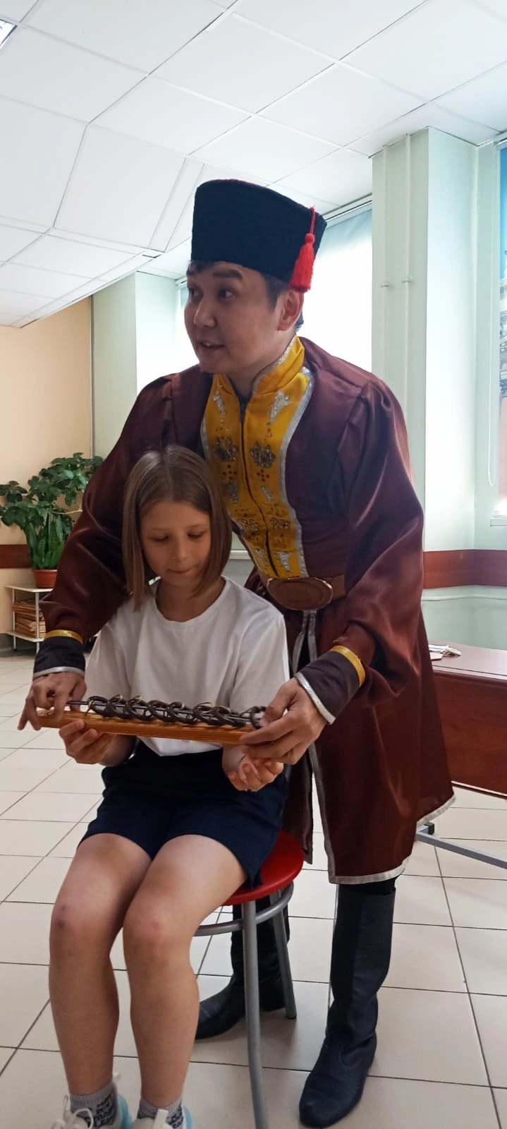 Юные жители нашего округа посмотрели традиционный калмыцкий костюм, национальные калмыцкие музыкальные инструменты и даже попробовали сами станцевать калмыцкий народный танец «Чичирдык», что в переводе с калмыцкого означает «Тряска».