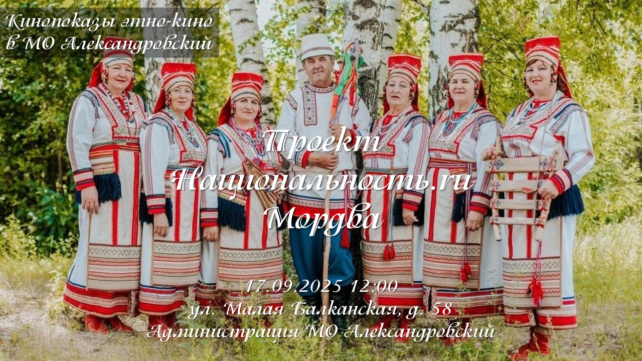 17 сентября в помещении Администрации МО Александровский состоится показ фильма о народе Мордва