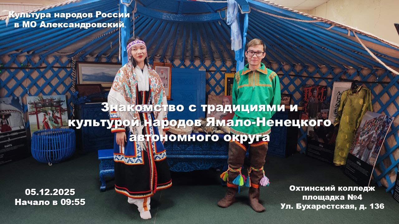 05 декабря на площадке №4 "Охтинский колледж" состоится знакомство с Ямало-Ненецким автономным округом