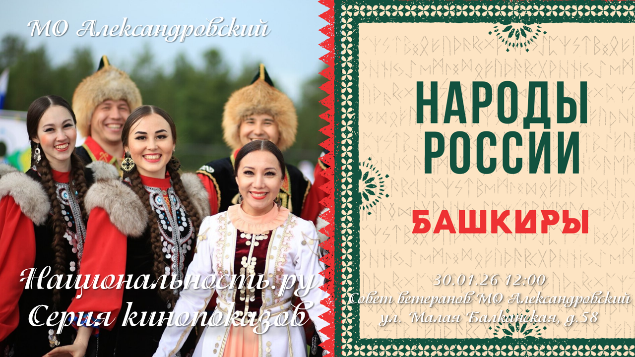 30 января в помещении Совета ветеранов МО Александровский состоится показ фильма посвященный народу башкиры