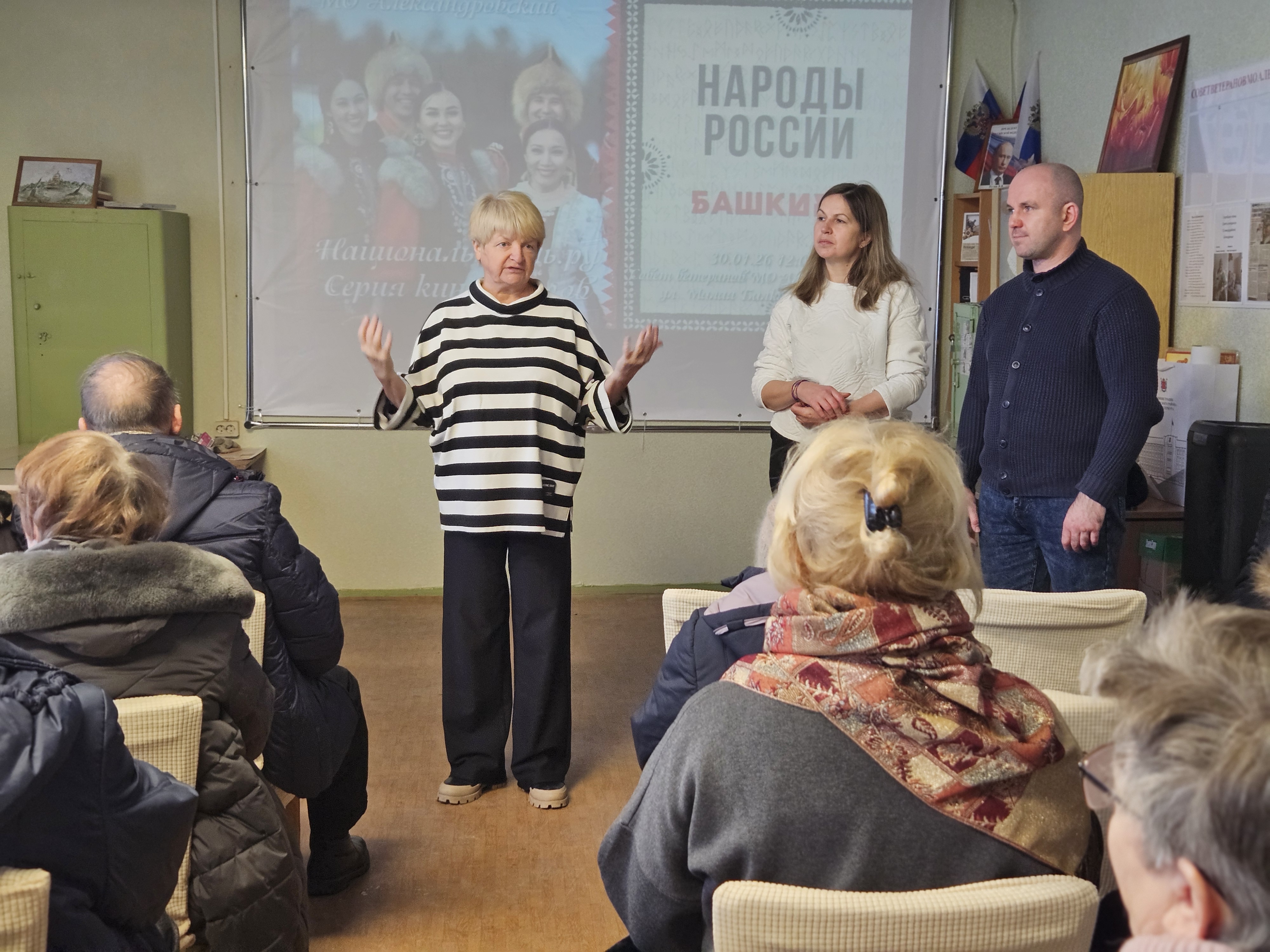 Встреча началась с приветствия главы местной Администрации МО Александровский Марины Вячеславовны Козициной и небольшого, но насыщенного рассказа о башкирском народе. Гости узнали, что башкиры – это не только миллионы человек по всему миру и многовековая история, но и уникальный эпос «Урал-батыр», древнее искусство горлового пения (узляу), и конечно же, знаменитый башкирский мёд.