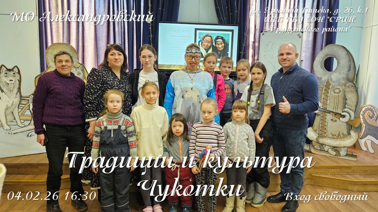 На этот раз наша гостья, потомственная чукчанка, преподаватель Института народов Севера, художественный руководитель ансамбля «Энер» Зоя Туре, вместе с сотрудниками МБУ Александровский посетят СПБ ГБУ СОН «Социально-реабилитационный центр для несовершеннолетних Фрунзенского района».