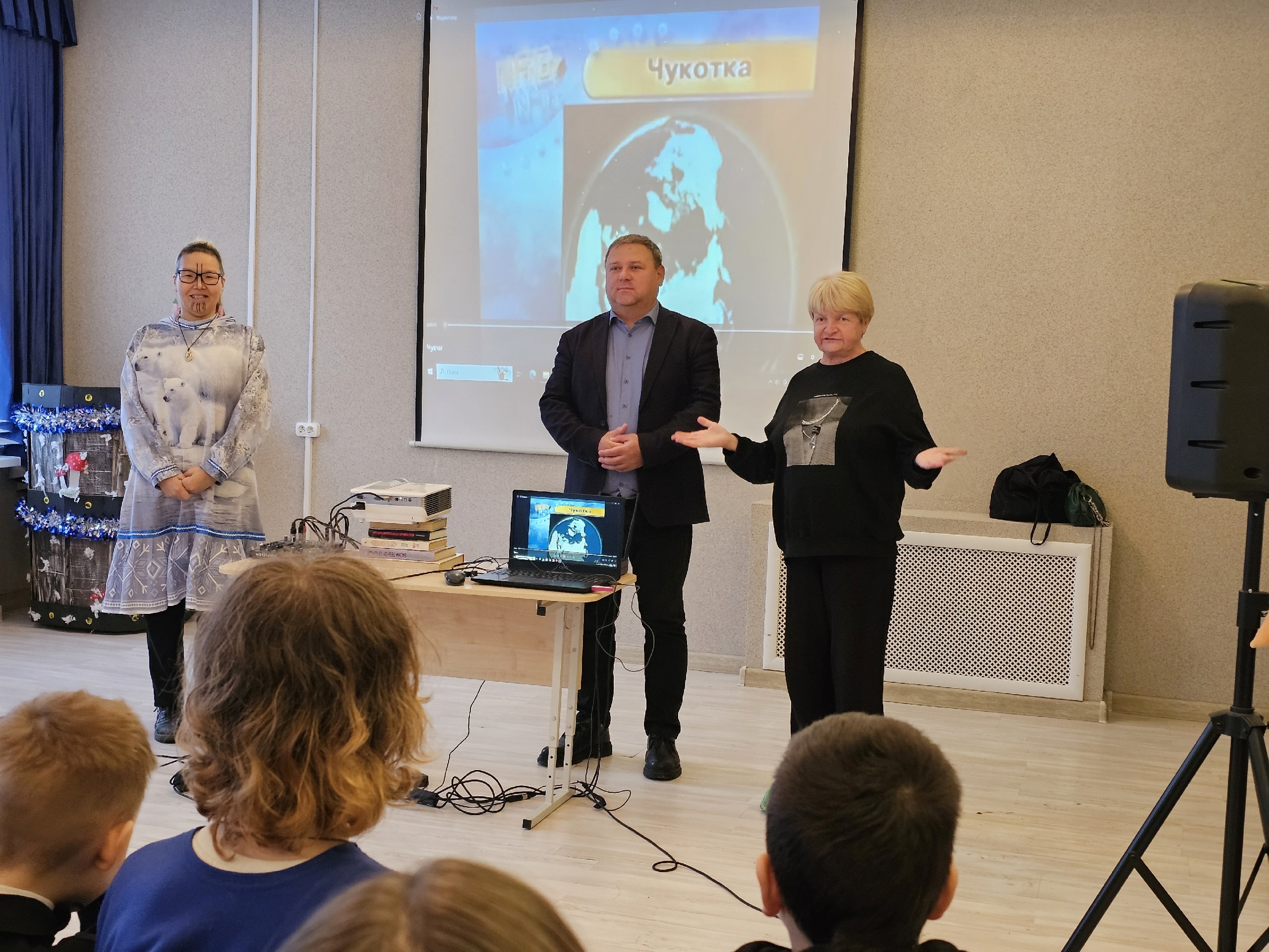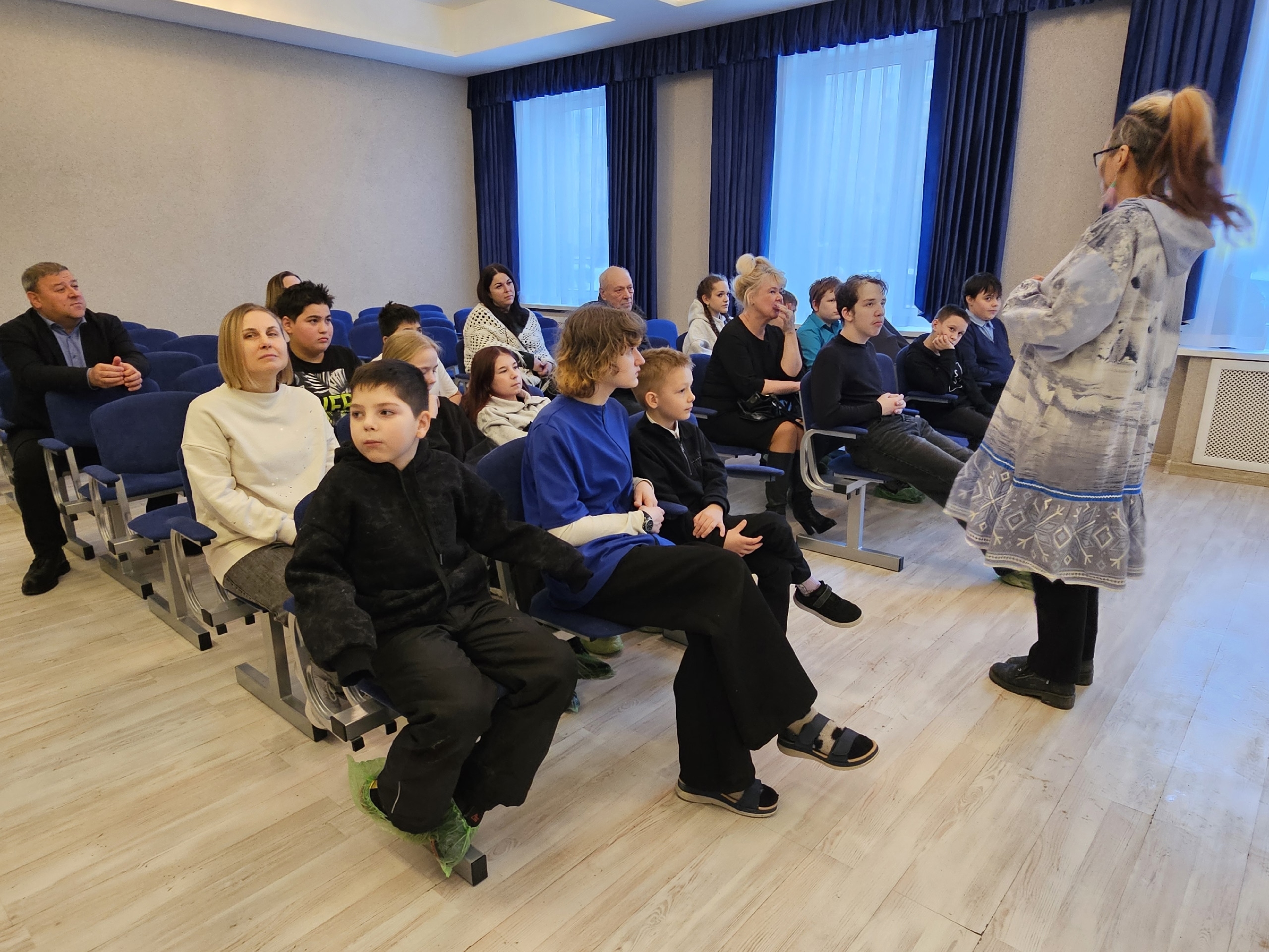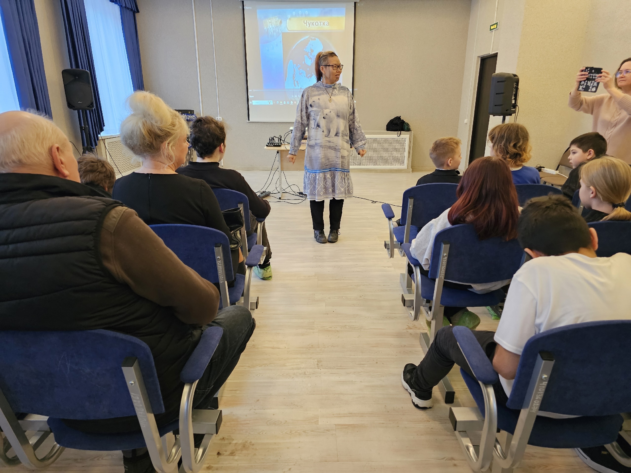 Воспитанники Центра и гости узнали о богатых традициях и культуре Чукотки. Зоя Туре очаровала всех своими рассказами о жизни чукчей — малочисленного коренного народа крайнего севера России.