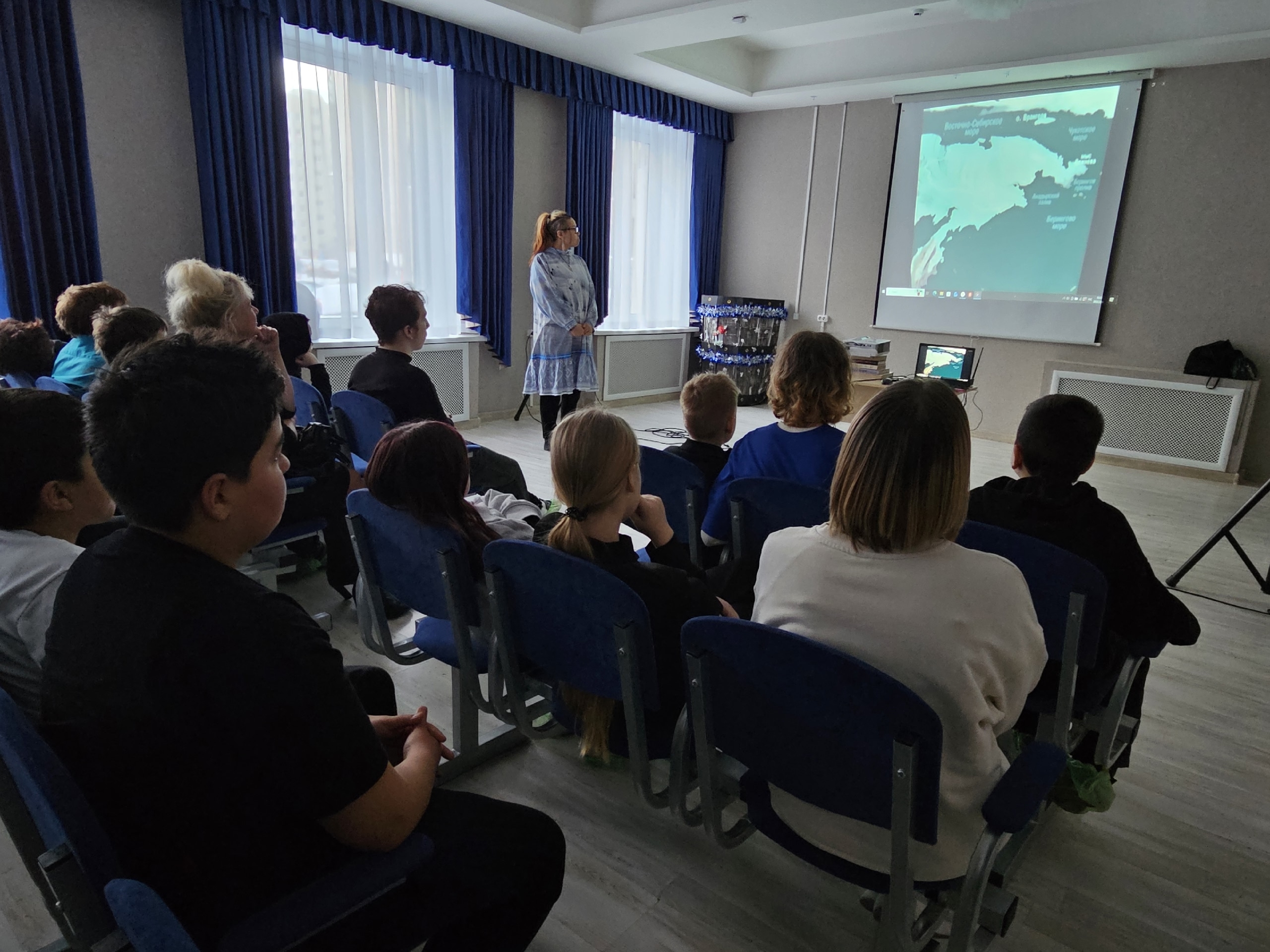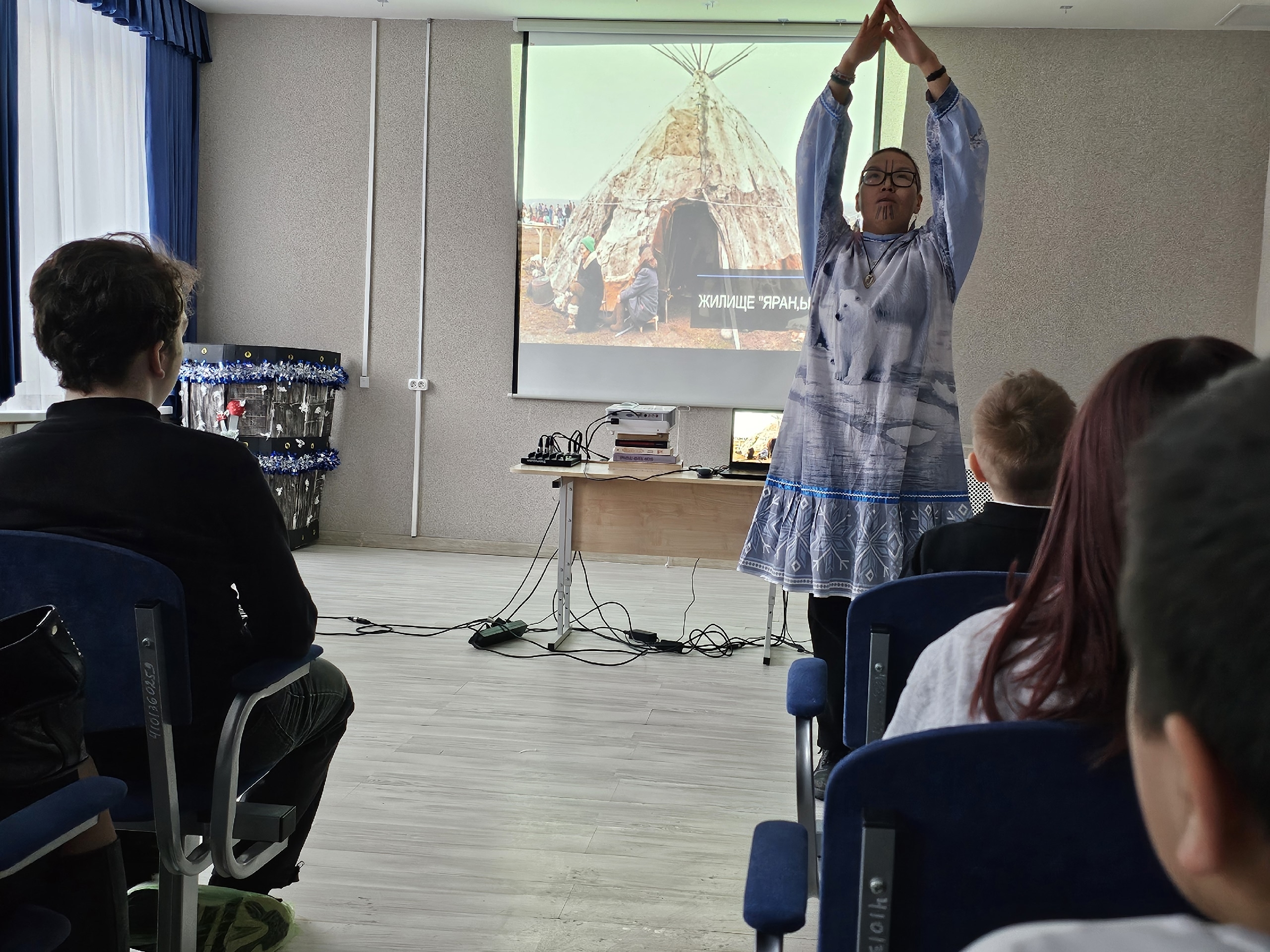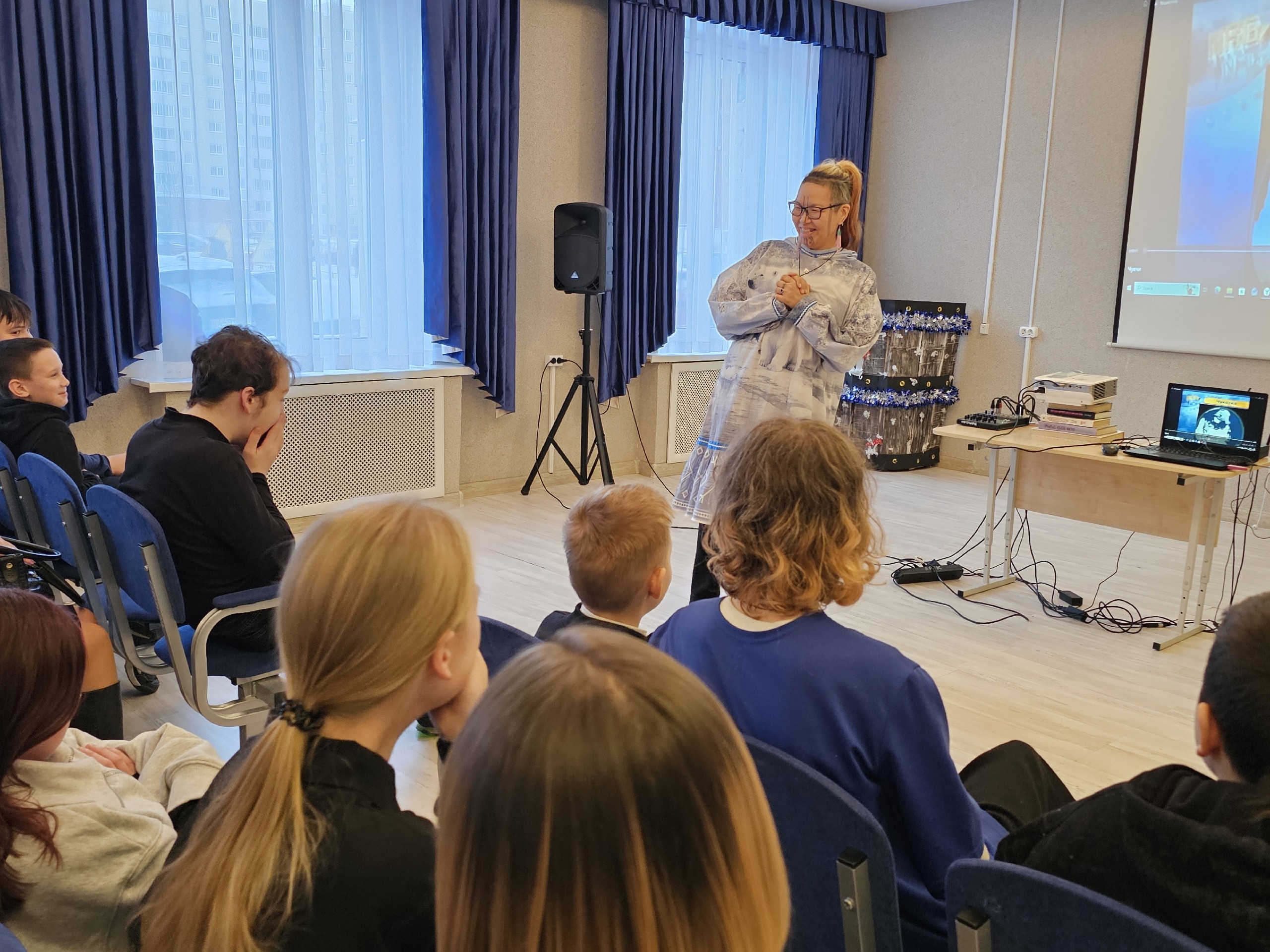 Воспитанники Центра и гости узнали о богатых традициях и культуре Чукотки. Зоя Туре очаровала всех своими рассказами о жизни чукчей — малочисленного коренного народа крайнего севера России.