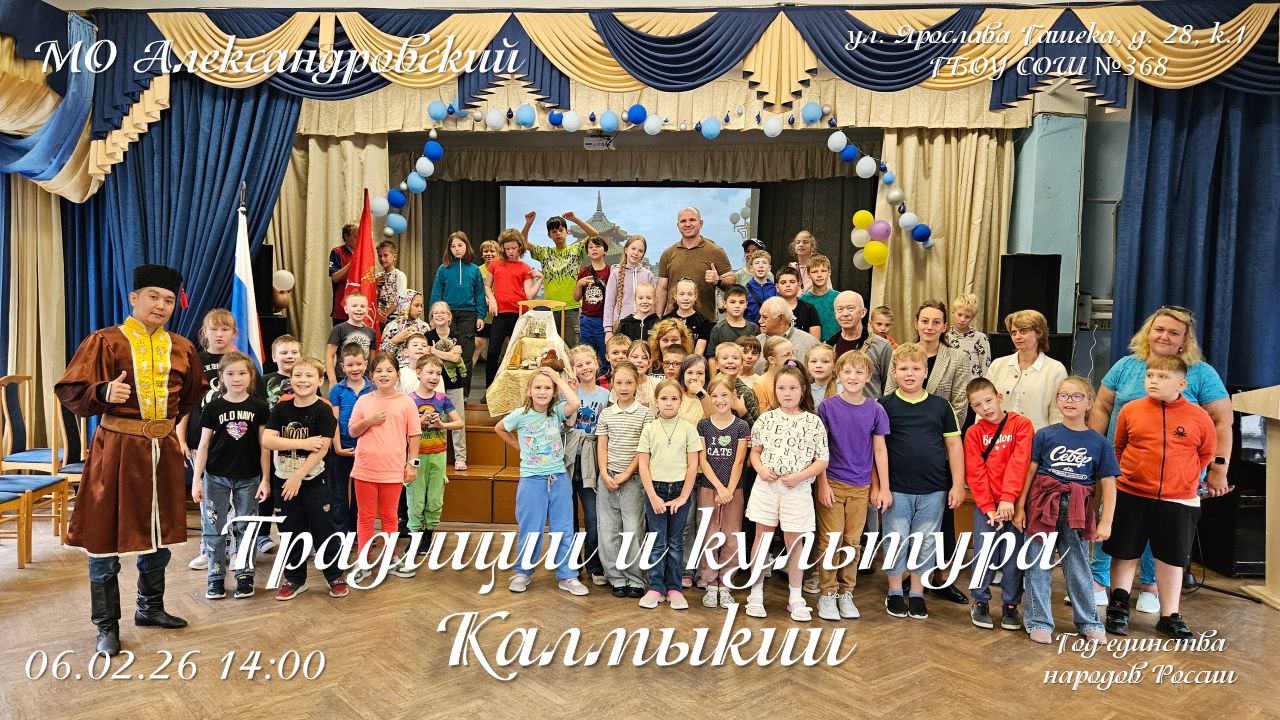 Хранитель калмыцких традиций, художественный руководитель калмыцкого ансамбля «Байн Цаг», совместно с сотрудниками МБУ Александровский посетят среднюю школу №368, в рамках мероприятия посвященного Году единства народов России.