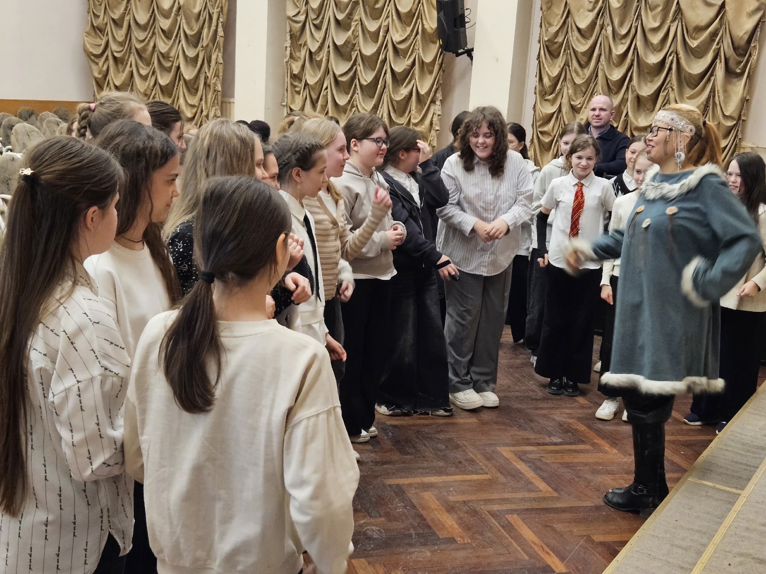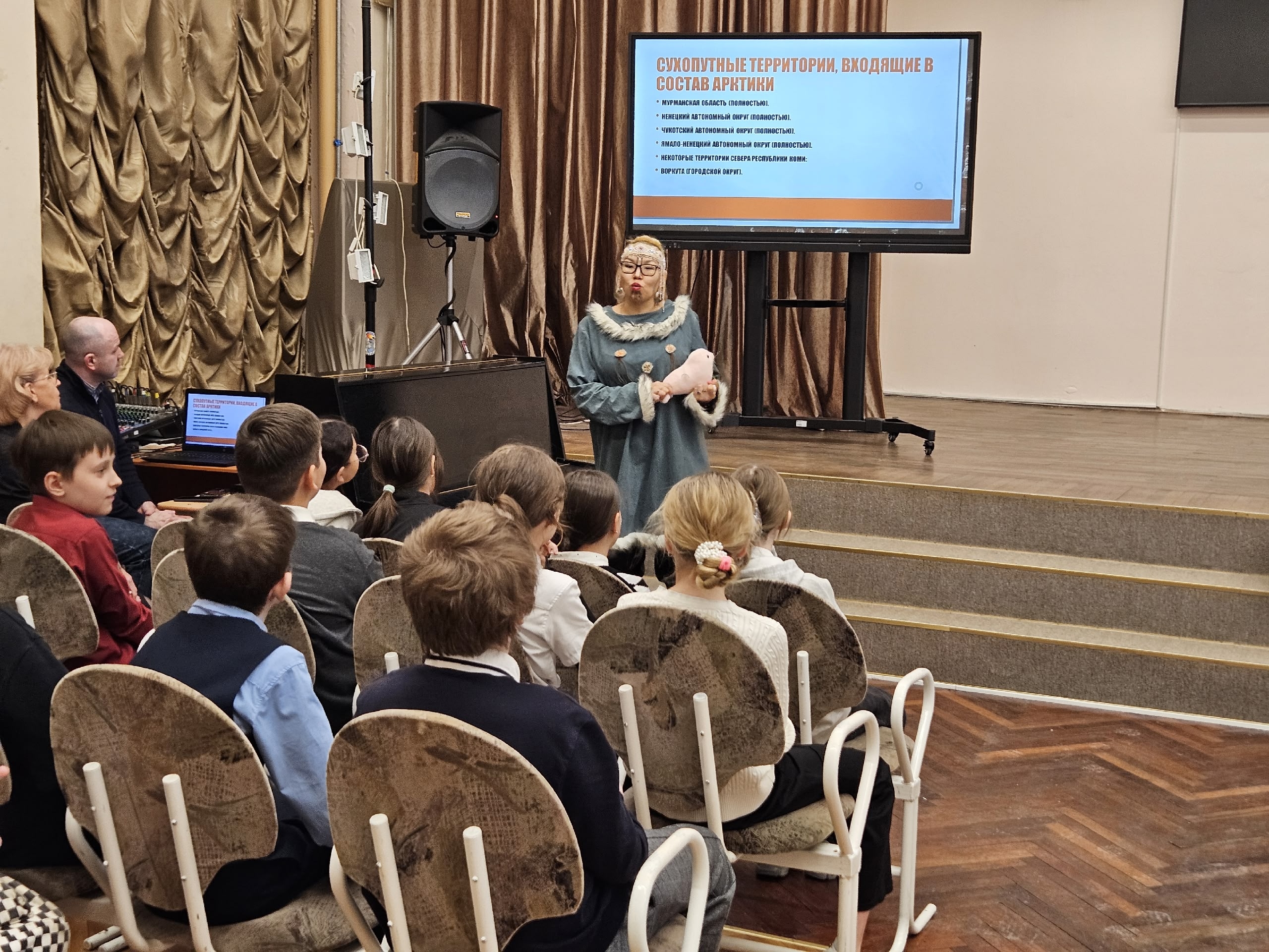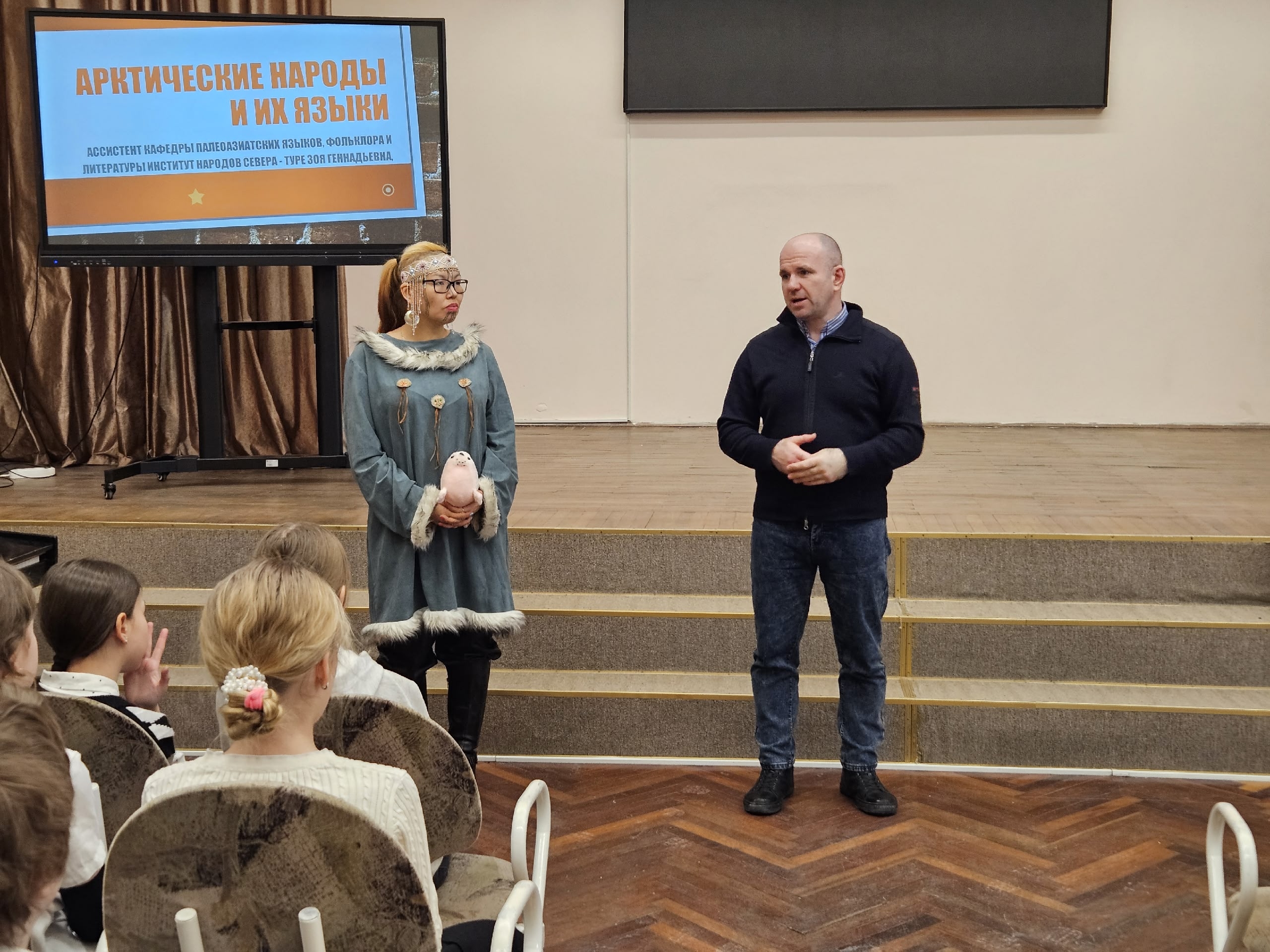 Зоя Геннадьевна с присущей ей теплотой рассказала школьникам о быте кочевых народов, о значении амулетов и орнаментов, о том, как устроен яранга и почему в чукотском фольклоре так важны образы животных. Но главный сюрприз ждал впереди.