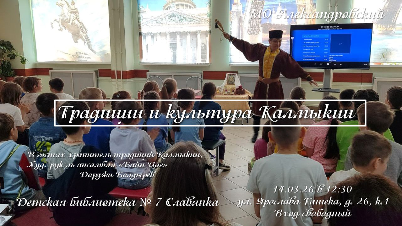 Хранитель калмыцких традиций, художественный руководитель калмыцкого ансамбля «Байн Цаг» Дорджи Болдырев, совместно с сотрудниками МБУ Александровский на этот раз посетят детскую библиотеку № 7 «Славянка».