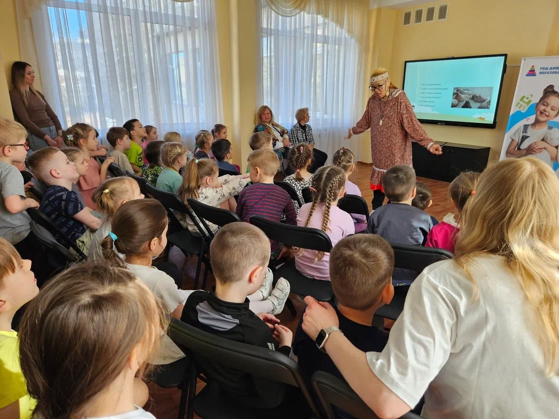 Ребята с горящими глазами разглядывали национальный костюм, слушали горловое пение и, кажется, сами ненадолго стали маленькими жителями тундры.