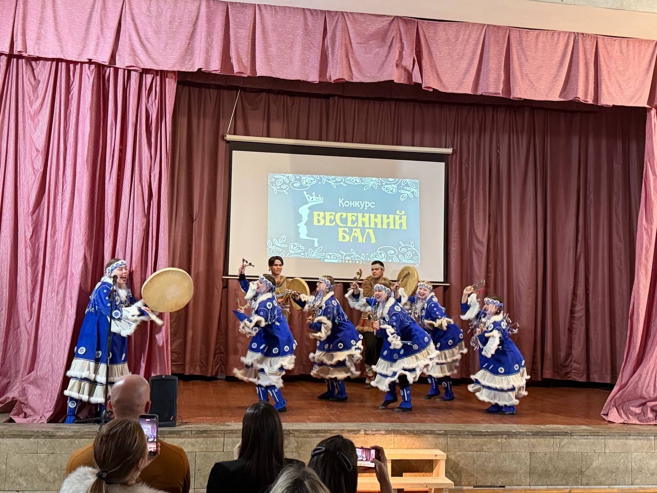 Под захватывающие ритмы бубна и звон колокольчиков зрители перенеслись в заснеженную тундру и ощутили на себе морозное дыхание Камчатки. Выступление ансамбля «Ейгунычвын» открыло конкурс талантов, интеллекта и грации «Весенний бал» Охтинского колледжа.