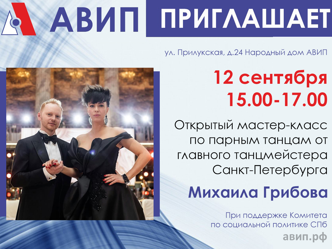 Приглашаем 12 сентября петербуржцев элегантного возраста (55+) на открытый мастер-класс по парным танцам от главного танцмейстера Санкт-Петербурга Михаила Грибова.