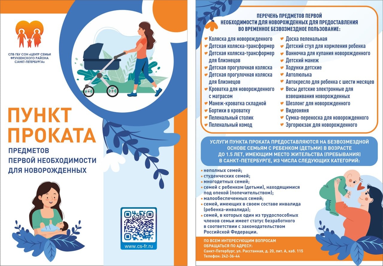 Во Фрунзенском районе на базе Санкт-Петербургского государственного бюджетного учреждения социального обслуживания населения «Центр социальной помощи семье и детям Фрунзенского района Санкт-Петербурга» (далее - «Центр семьи») открыт пункт проката предметов первой необходимости для новорожденных.