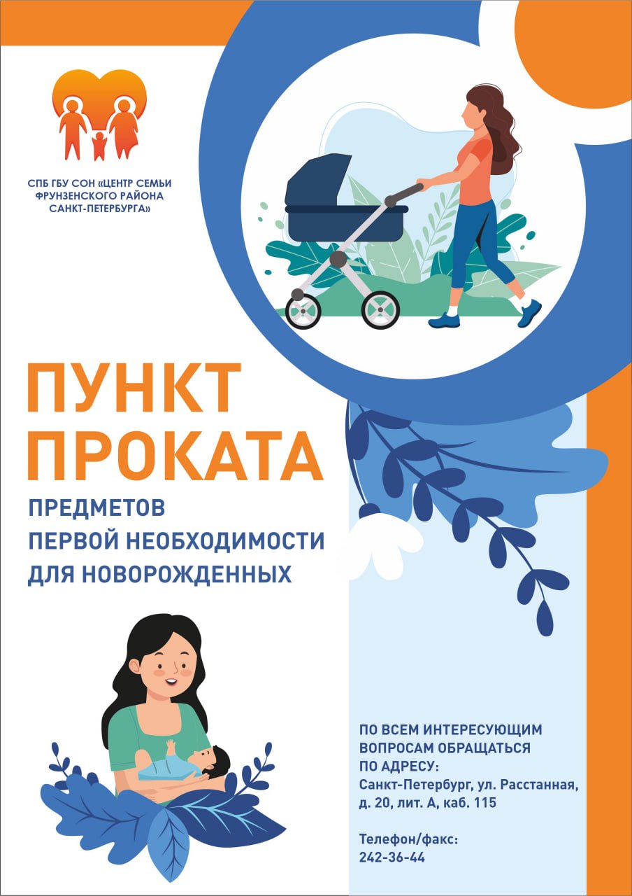 Во Фрунзенском районе на базе Санкт-Петербургского государственного бюджетного учреждения социального обслуживания населения «Центр социальной помощи семье и детям Фрунзенского района Санкт-Петербурга» (далее - «Центр семьи») открыт Пункт проката предметов первой необходимости для новорожденных.