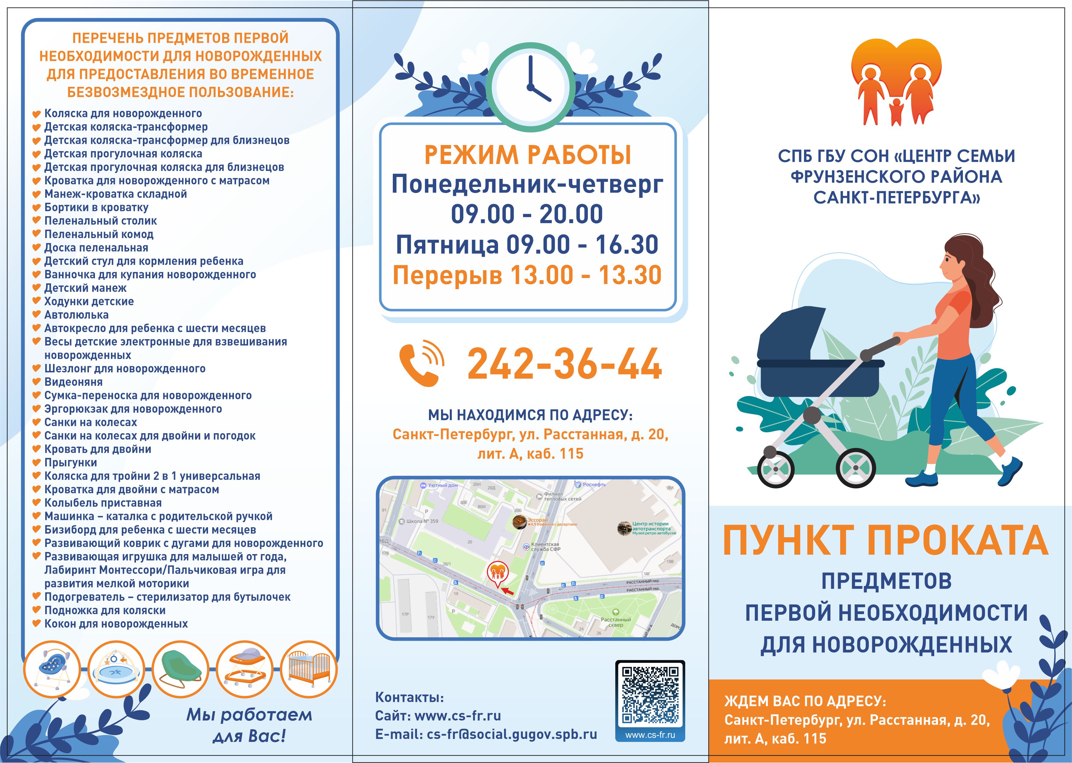 Во Фрунзенском районе на базе Санкт-Петербургского государственного бюджетного учреждения социального обслуживания населения «Центр социальной помощи семье и детям Фрунзенского района Санкт-Петербурга» (далее - «Центр семьи») открыт Пункт проката предметов первой необходимости для новорожденных.