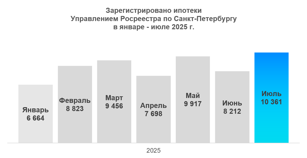 Ипотеки зарегистрировано – 10 361. Это максимальное значение в 2025 году. С начала года зарегистрировано ипотеки 61 132.