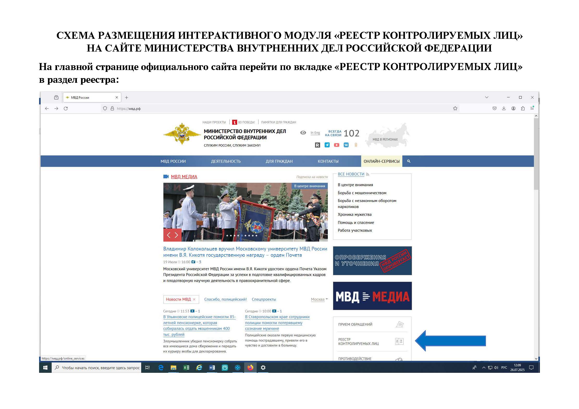 Модуль «Реестр контролируемых лиц» размещен на сайте Министерства по адресу: https://мвд.рф/rkl (схема размещения прилагается).