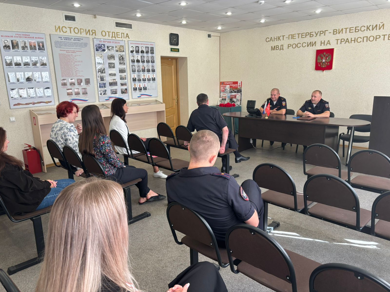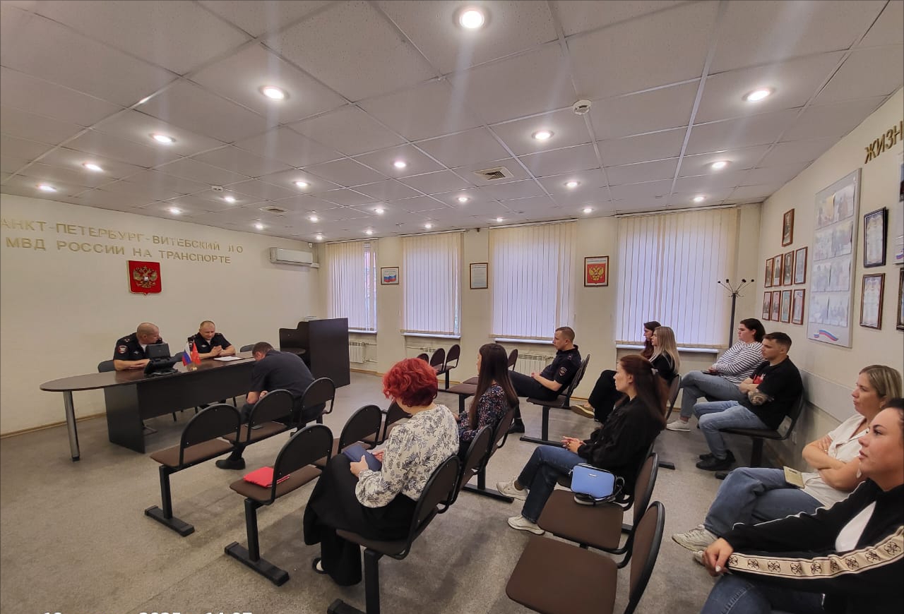 Встреча заместителя начальника отдела Госавтоинспекции Александра Землякова с сотрудниками СПб-Витебского ЛО МВД России на транспорте