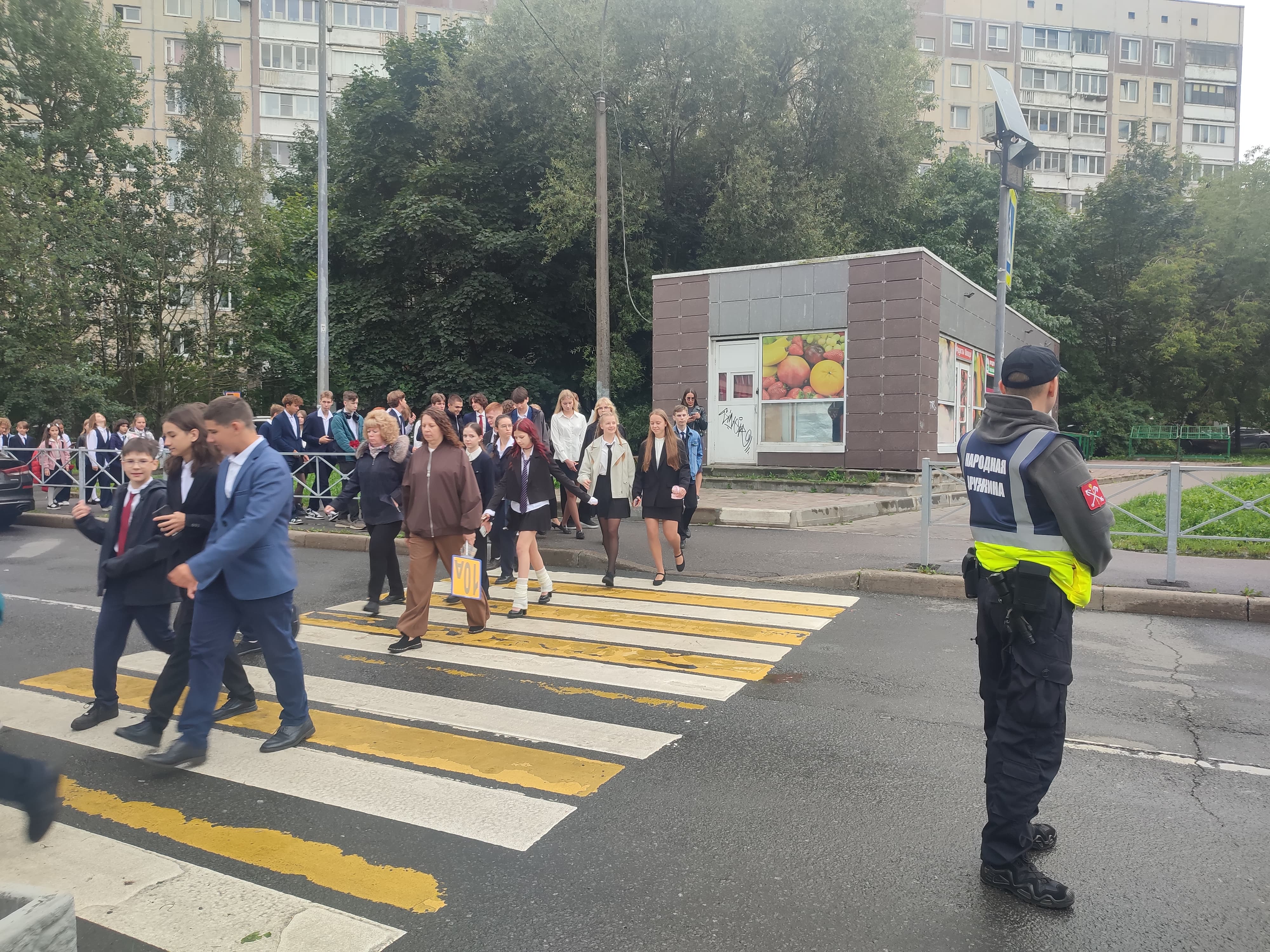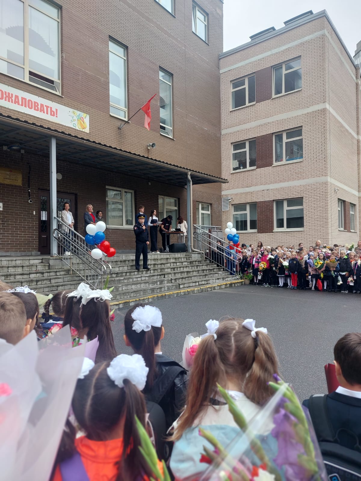 1 сентября, в День знаний на торжественной линейке в ГБОУ № 492 с поздравительным словом выступил заместитель начальника отдела Госавтоинспекции по Фрунзенскому району Александр Земляков