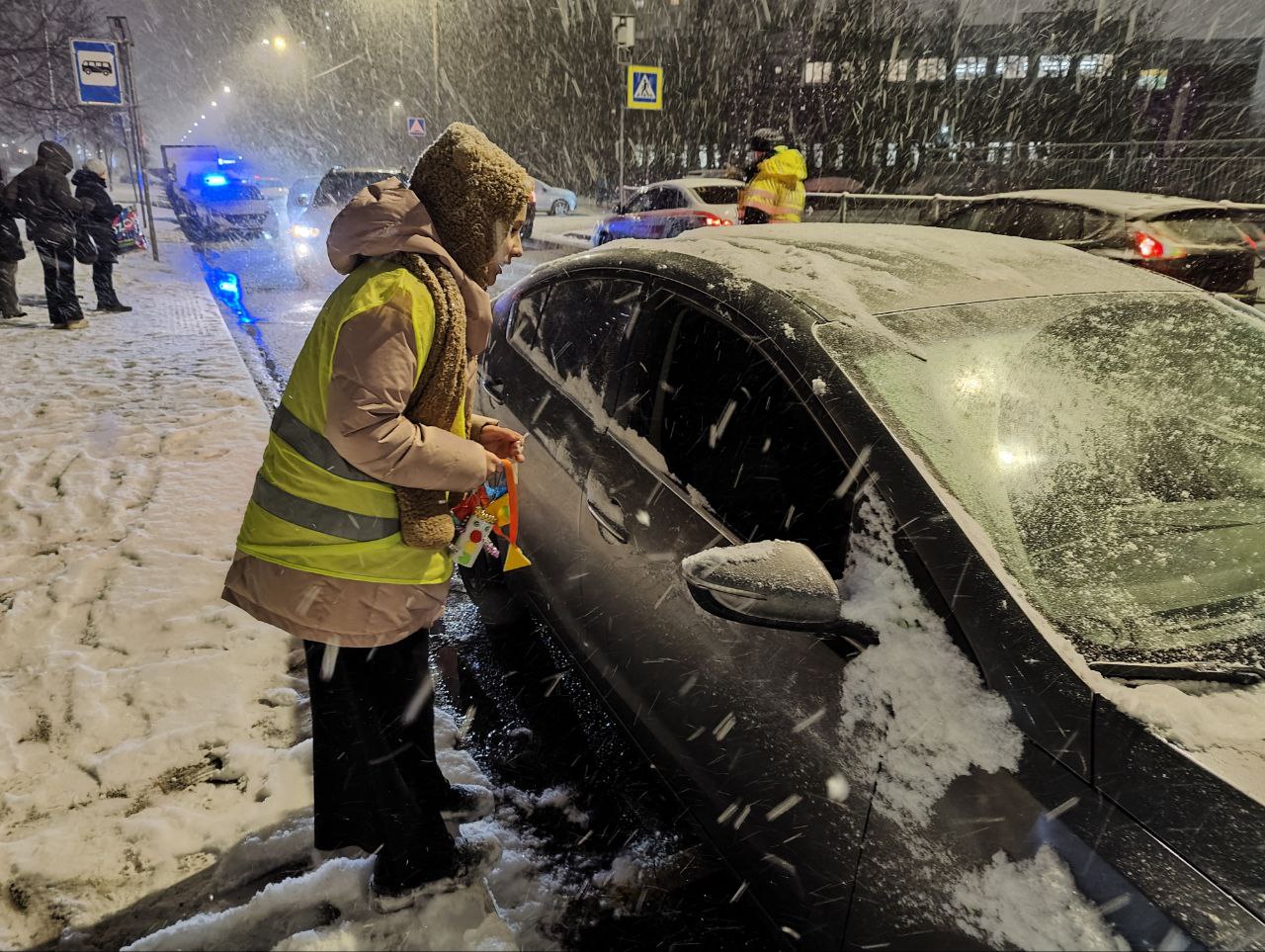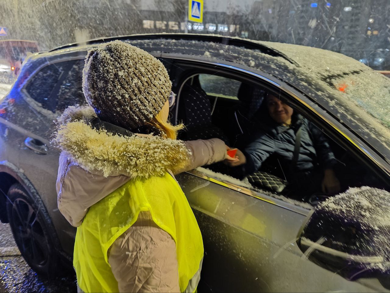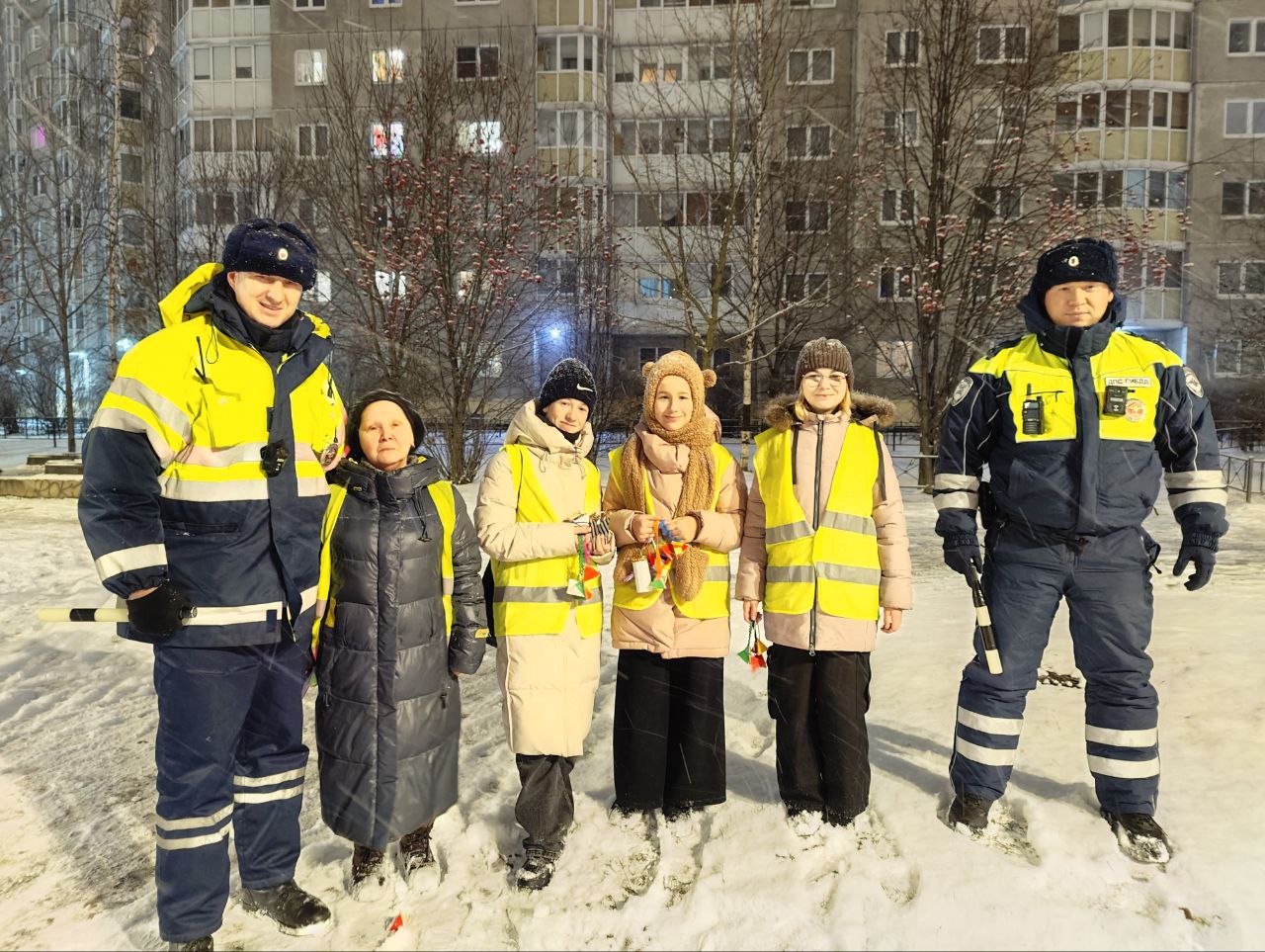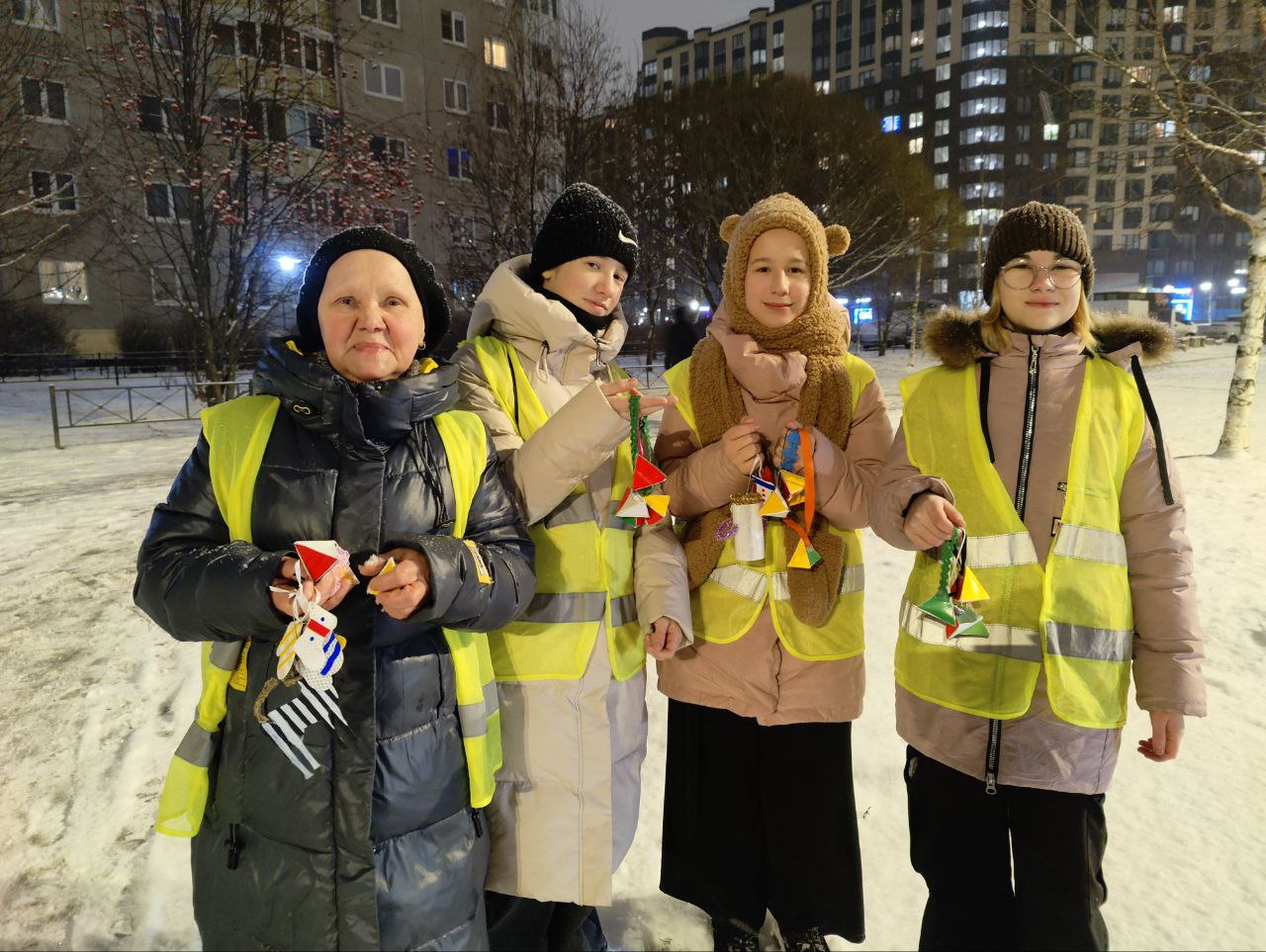 ЮИДовцы, совместно с сотрудниками Госавтоинспекции и представителями районного  центра по БДД поздравляли пешеходов и водителей с наступающим Новым 2026 годом и вручали новогодние елочные игрушки с тематикой соблюдения ПДД, которые в течение нескольких недель изготавливали учащиеся школы. За период проведения акции пешеходы и водители получили в подарок более 30 новогодних игрушек. Юным пешеходам участники акции напомнили о важности использования световозвращателей в темное время суток.