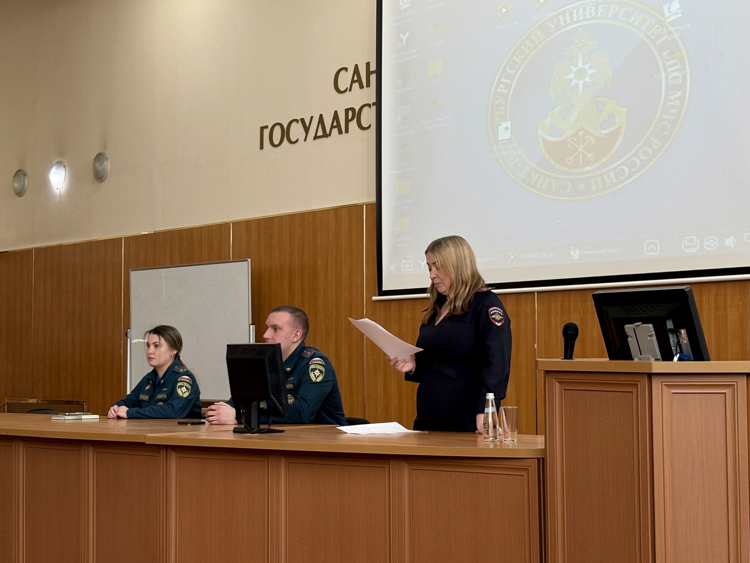 Представитель Госавтоинспекции Фрунзенского района провел встречу среди курсантов и слушателей Санкт-Петербургского университета Государственной противопожарной службы МЧС России им. Героя Российской Федерации генерала армии Е. Н. Зиничева