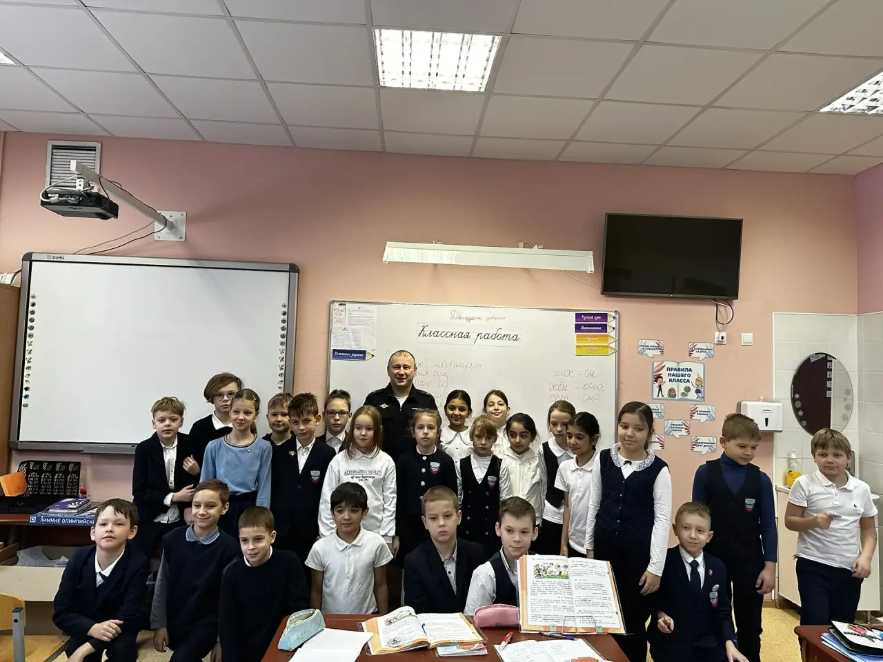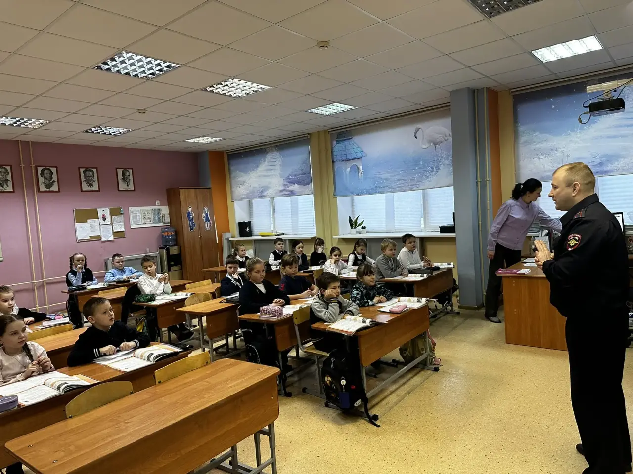 В рамках профилактики дорожно-транспортных происшествий с участием детей врио начальника отдела Госавтоинспекции Александр Земляков провёл познавательные беседы с учениками начальных классов школы № 492. Главная цель мероприятия — напомнить ребятам о ключевых правилах безопасности на дороге, во дворе и вблизи проезжей части.